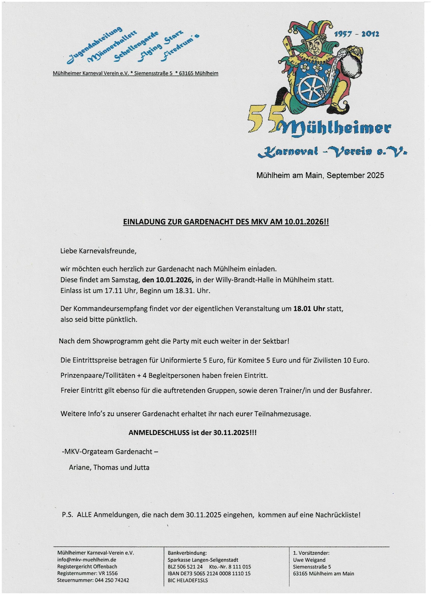 EINLADUNG ZUR GARDENACHT DES MKV AM 10.01.2026!!